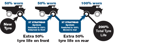 The XT XTRATREAD System provides 3 options for extending tyre life, adding up to three lives to your tier one tyres: